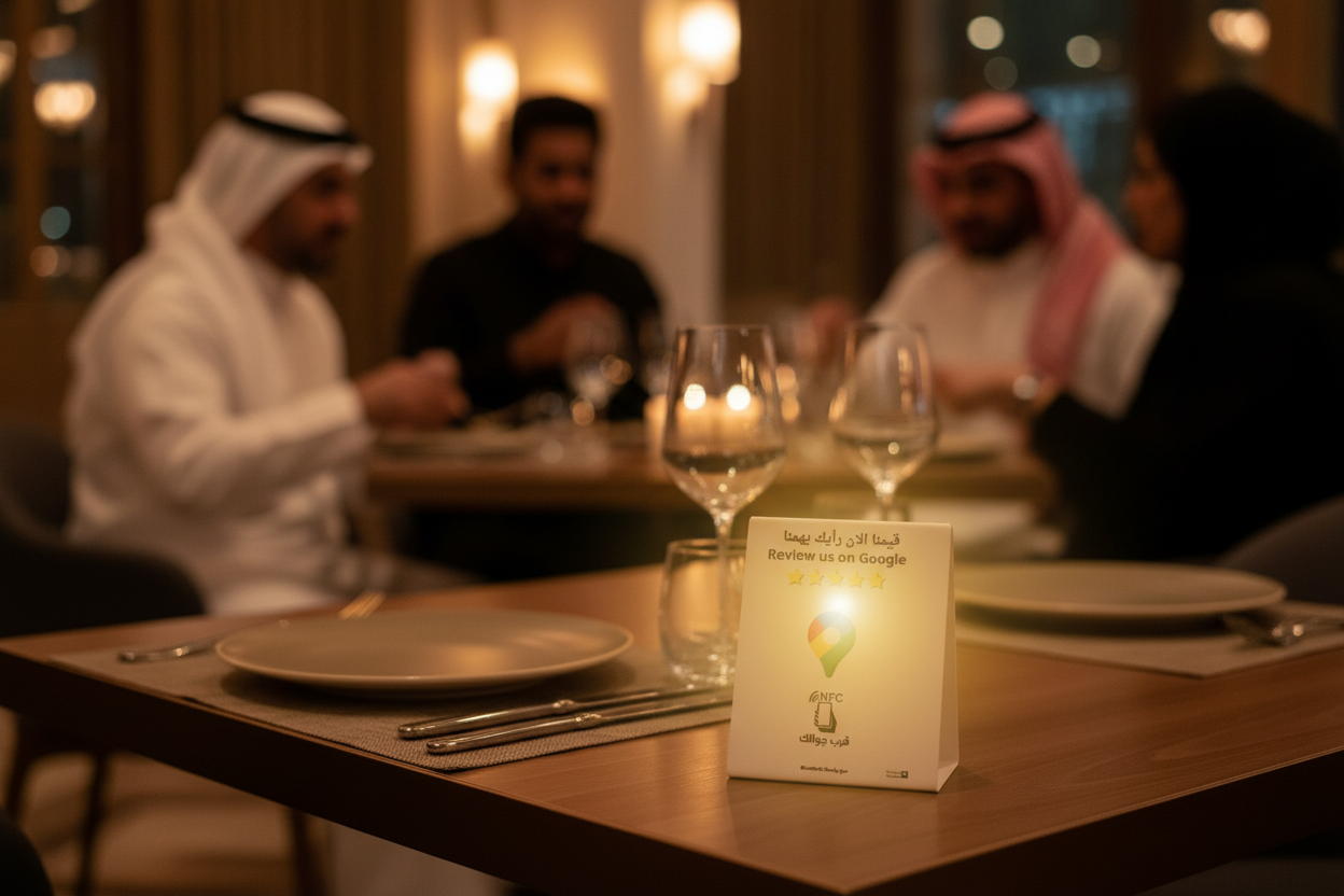 تعرّف على أفضل طريقة لرفع تقييمات جوجل مابس لنشاطك التجاري في السعودية باستخدام ستاند NFC الذكي من Enox.